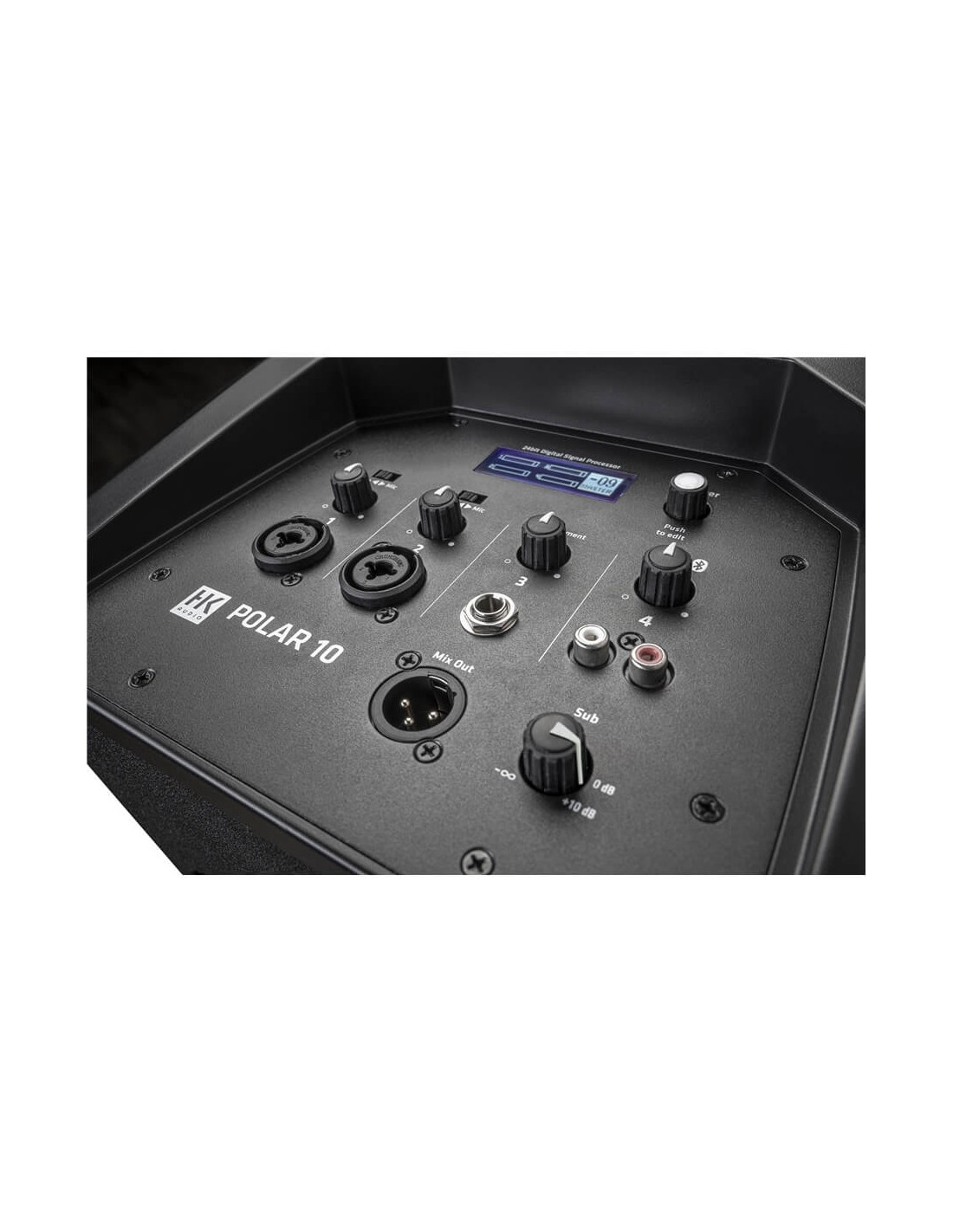 Il mixer multicanale integrato offre numerose connessioni per una vasta gamma di scenari applicativi: due canali per microfono o segnali di linea e un canale Aux per la musica preregistrata. Polar 10 e 12 hanno anche uno speciale canale per strumenti (ad es. per una chitarra acustica).