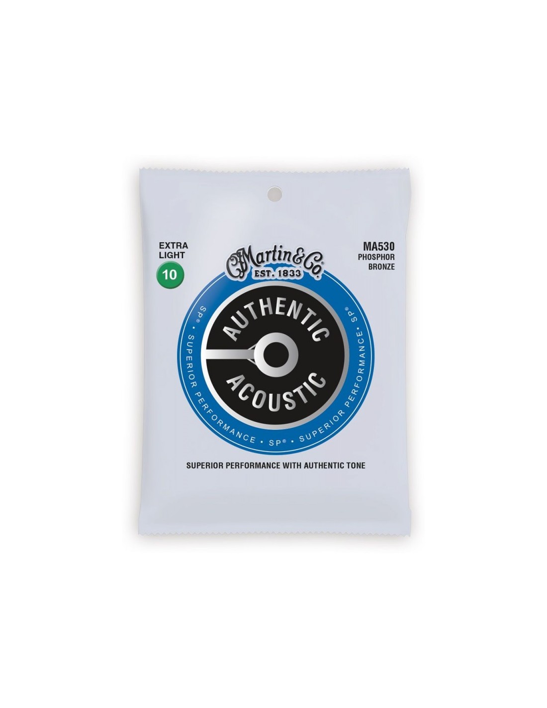 Le corde per chitarra acustica MA530 di Martin & Co della serie Authentic Acoustic SP® sono composte da un avvolgimento in Fosforo Bronzo di alta qualità su filo ultra resistente alla trazione e alla corrosione. Offrono un timbro genuino ed equilibrato, stabililità di accordatura e grande suonabilità. MA530 in scalatura Extra Light presentano i seguenti diametri: 10-14-23-30-39-47
