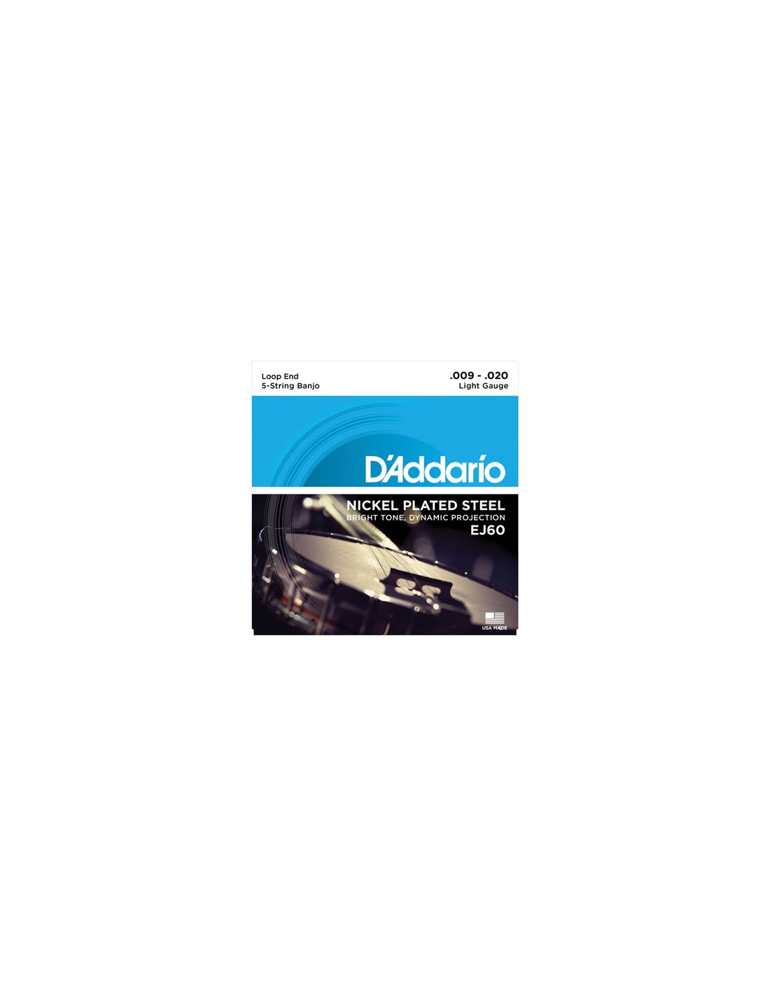 Daddario EJ60 5-String Banjo String Set for 5 String Banjo, Nickel Wound, Gauges 009- 010- 013- 020- 009, Loop End