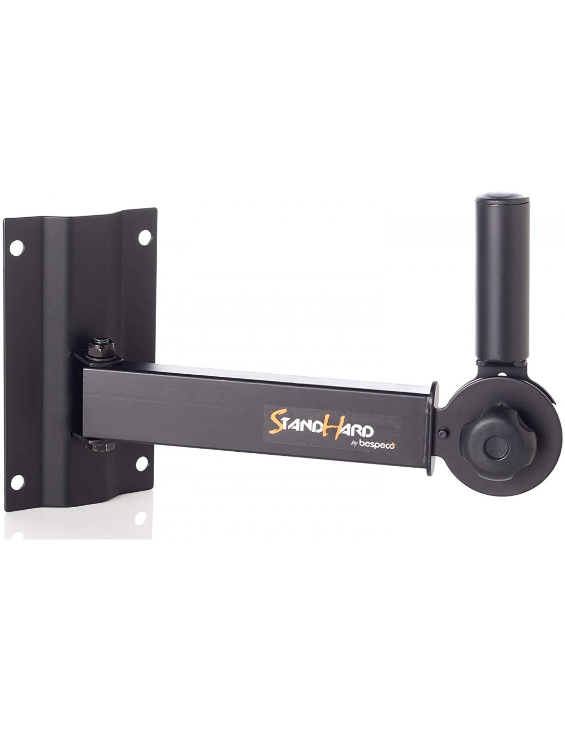 Supporto in acciaio per cassa con montaggio a parete, dotato di perno da 35mm inclinabile mediante manopola. Può ruotare orizzontalmente a destra e sinistra di 90°.