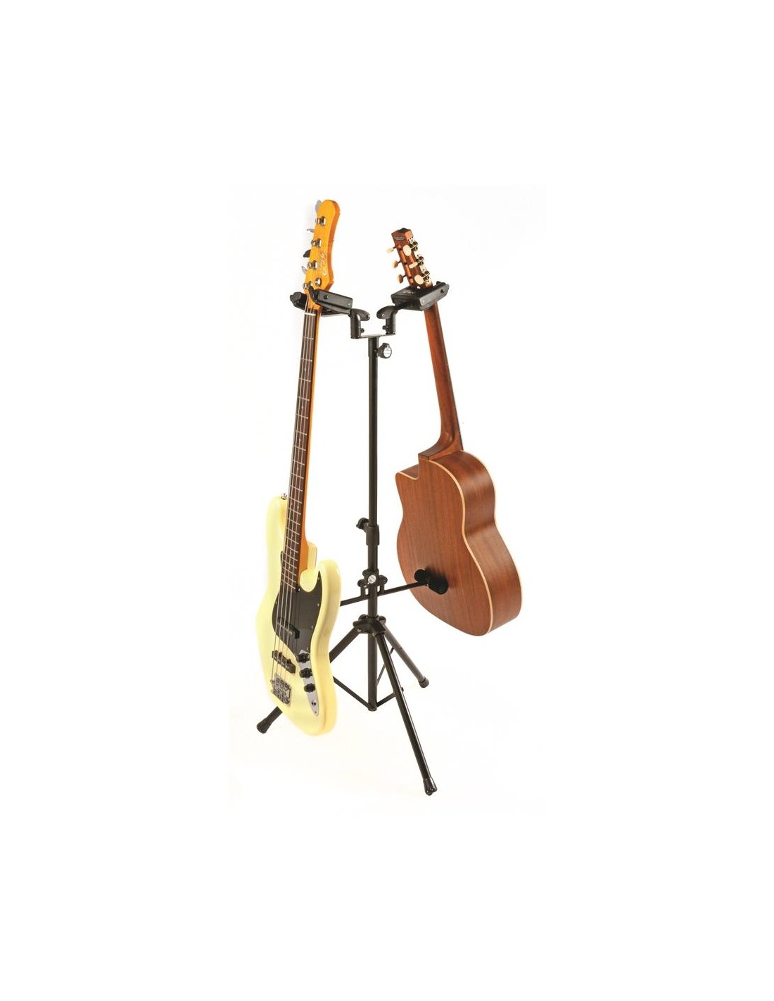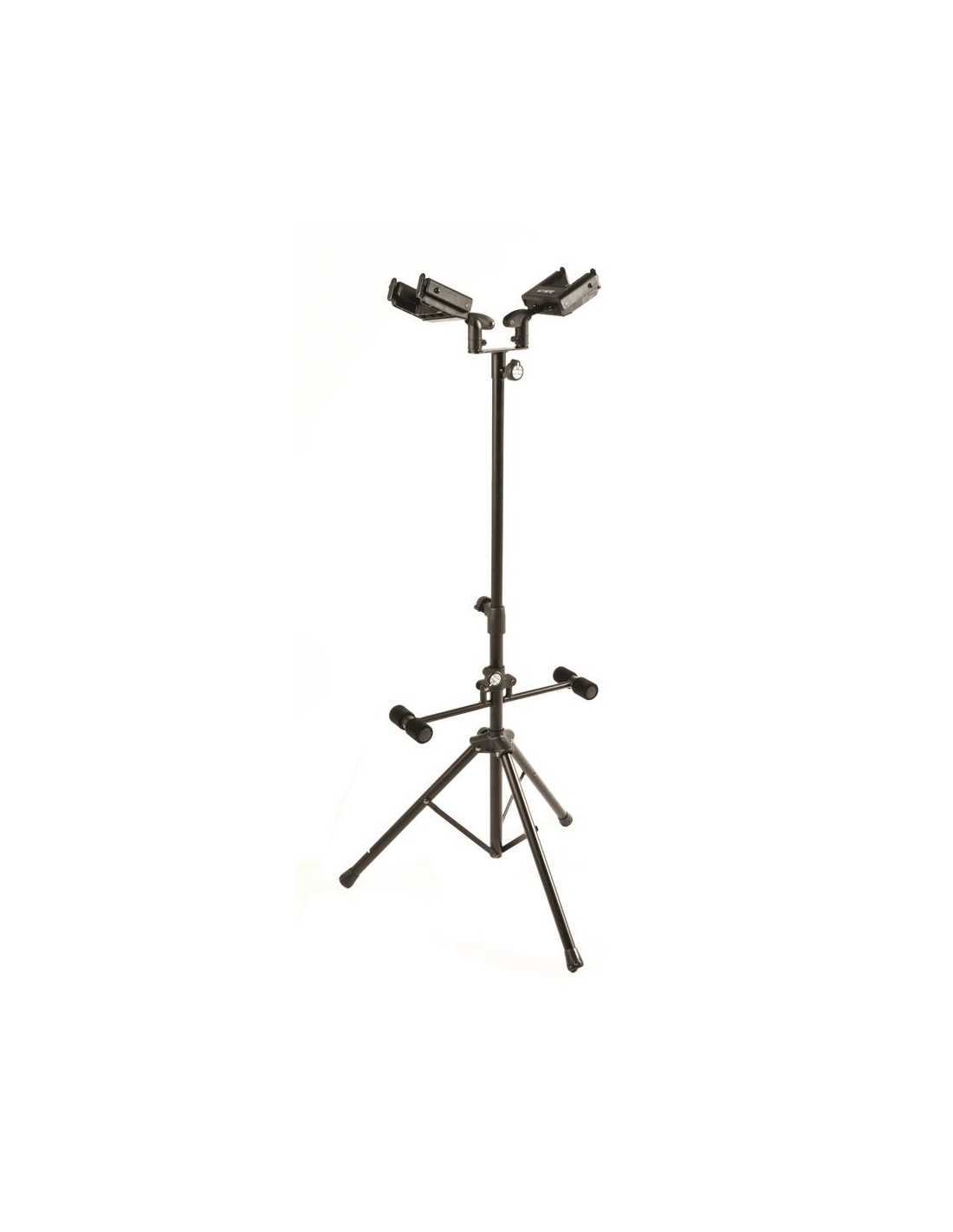 Stand universale per tre chitarre dotato di ruote. Il sostegno è ricoperto con uno strato di morbida gomma per tenere la chitarra bloccata senza il rischio che la verniciatura venga danneggiata.