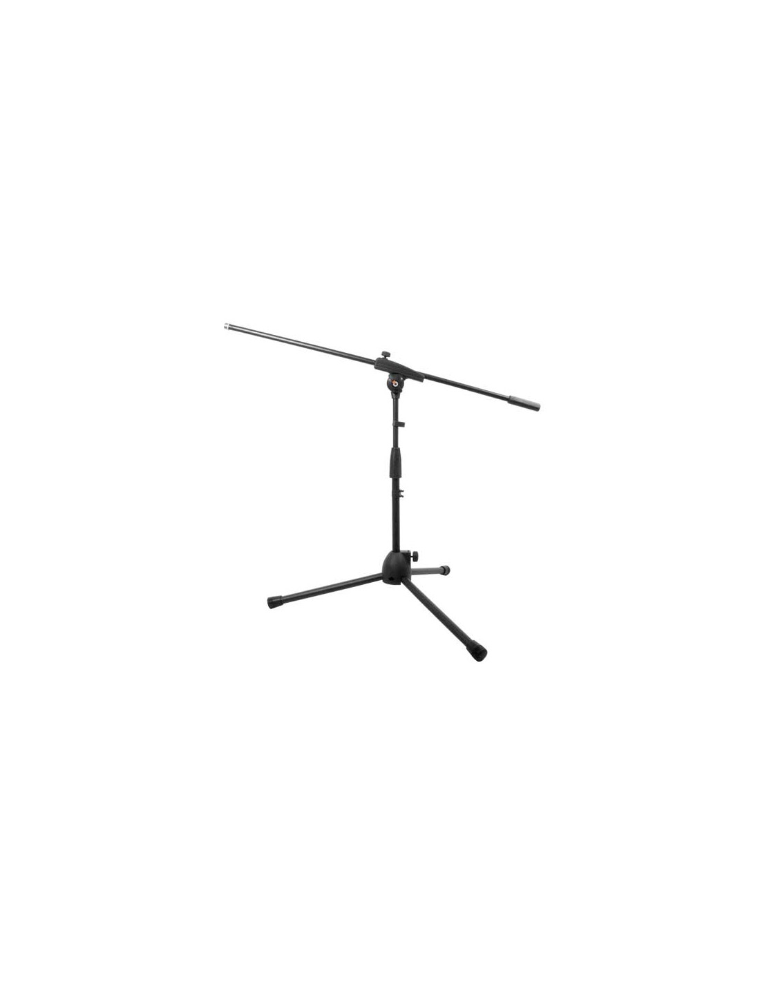 Asta giraffa nana in acciaio verniciato nero con snodo e basamento in nylon caricato.