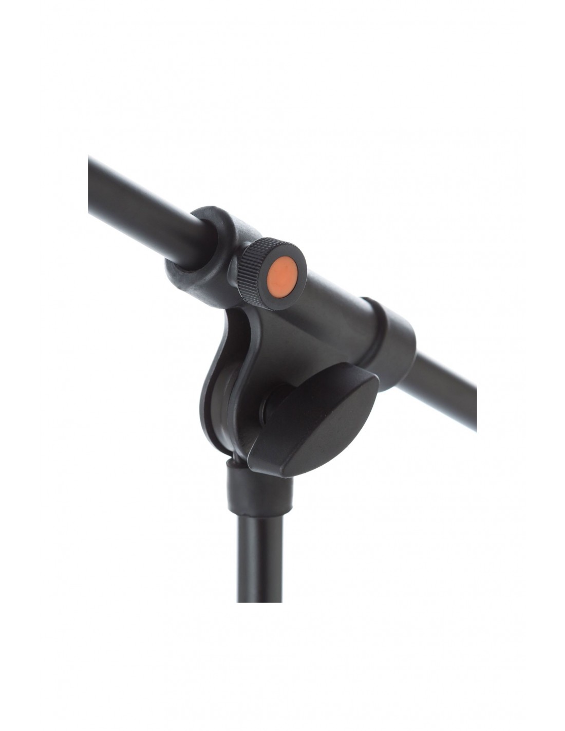 Asta microfonica a giraffa con snodo centrale in nylon. La base è costituita da un'anima in metallo irrobustita da una calotta in nylon resistente. Gommini antivibrazioni /antiscivolo.