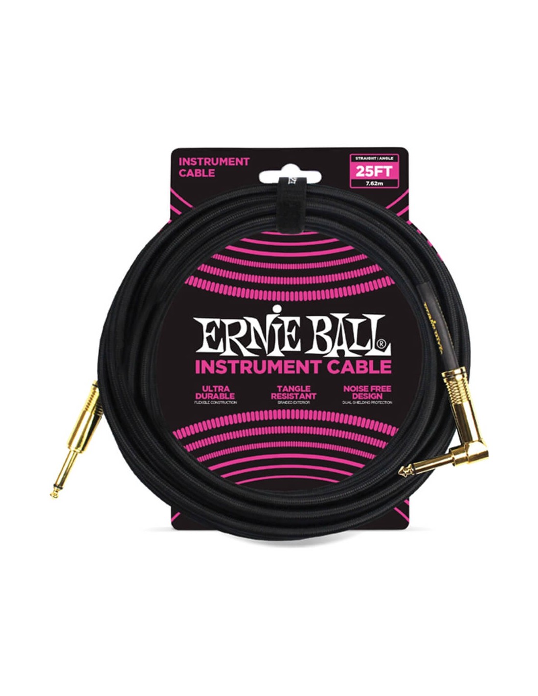 La guaina restringente nera con stampato il marchio Ernie Ball protegge le saldature riducendo al minimo la probabilità di rottura durante le manipolazioni. Il segnale è preservato grazie a una schermatura multipla del cavo che minimizza il rumore e il rivestimento esterno braided ne impedisce l'aggrovigliamento.