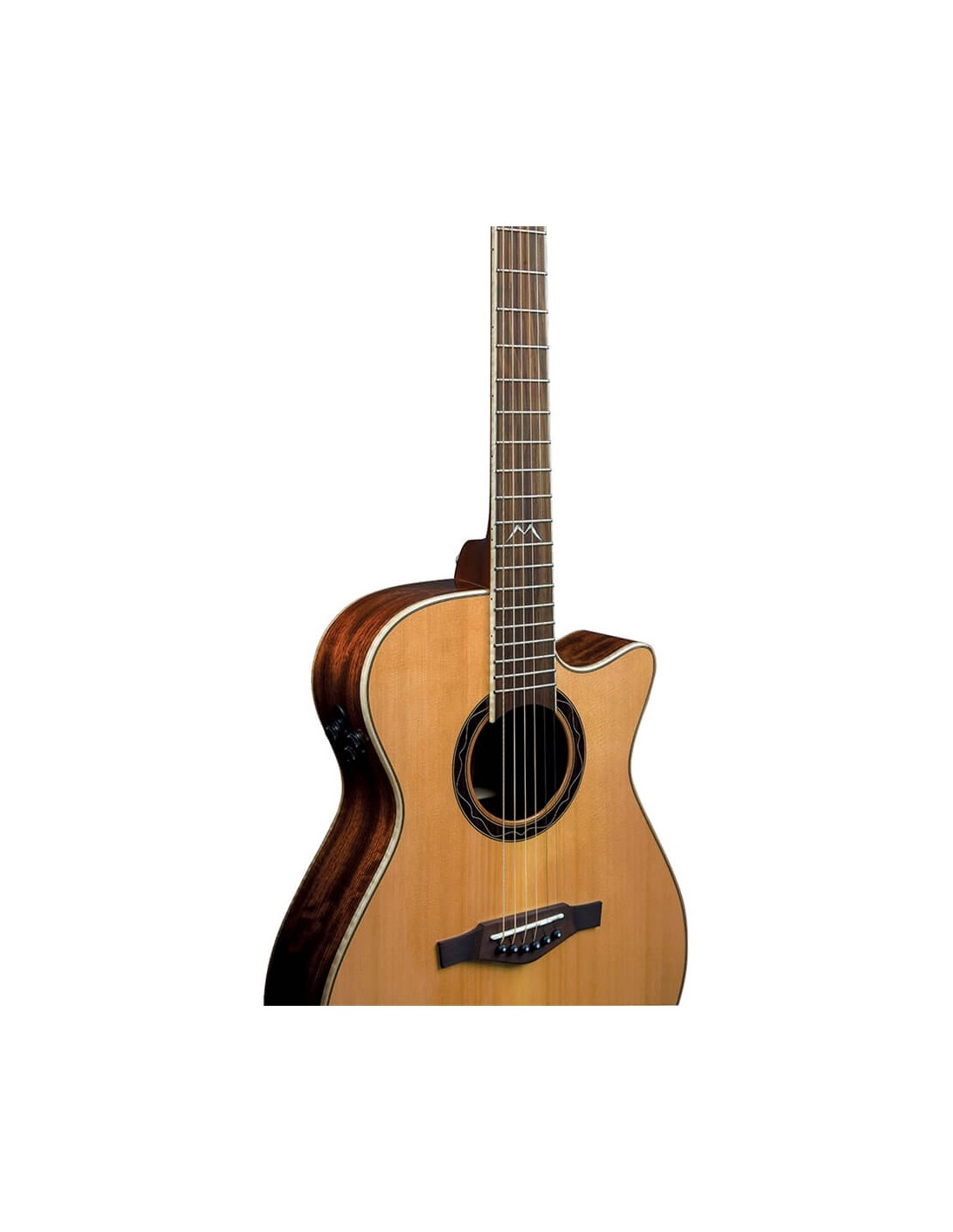 La combinazione di Cedro massello sul top e Ovangkol su fasce e fondo, frutto di una ricerca accurata, regala a questo strumento uno spettro timbrico molto ampio e sempre ben equilibrato su ogni singola corda. Caratteristica decisamente importante è la presenza di un sistema di amplificazione molto performante, il Fishman Flex Blend - formato da piezo e microfono a condensatore interno - questo sistema permette di cogliere ogni sfumatura della chitarra grazie alla possibilità di aggiungere gradualmente al segnale del piezo il segnale ripreso dal microfono, tramite un potenziometro blend. Tra i controlli, oltre al volume di uscita ed al blend, sono presenti un accordatore a display (attivabile premendo il potenziometro del volume) ed un controllo EQ che lavora in modalità "mid-scooped": tenuto al minimo il segnale non viene equalizzato (flat), aumentando si vanno a ridurre gradualmente le medie frequenze in favore di basse e alte, molto comodo per ottenere un suono già pronto per il mix.