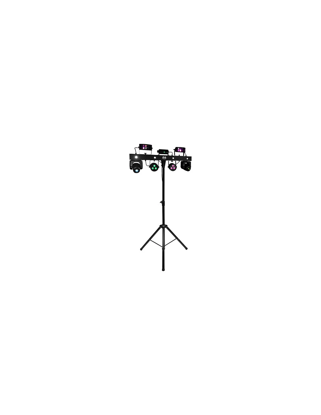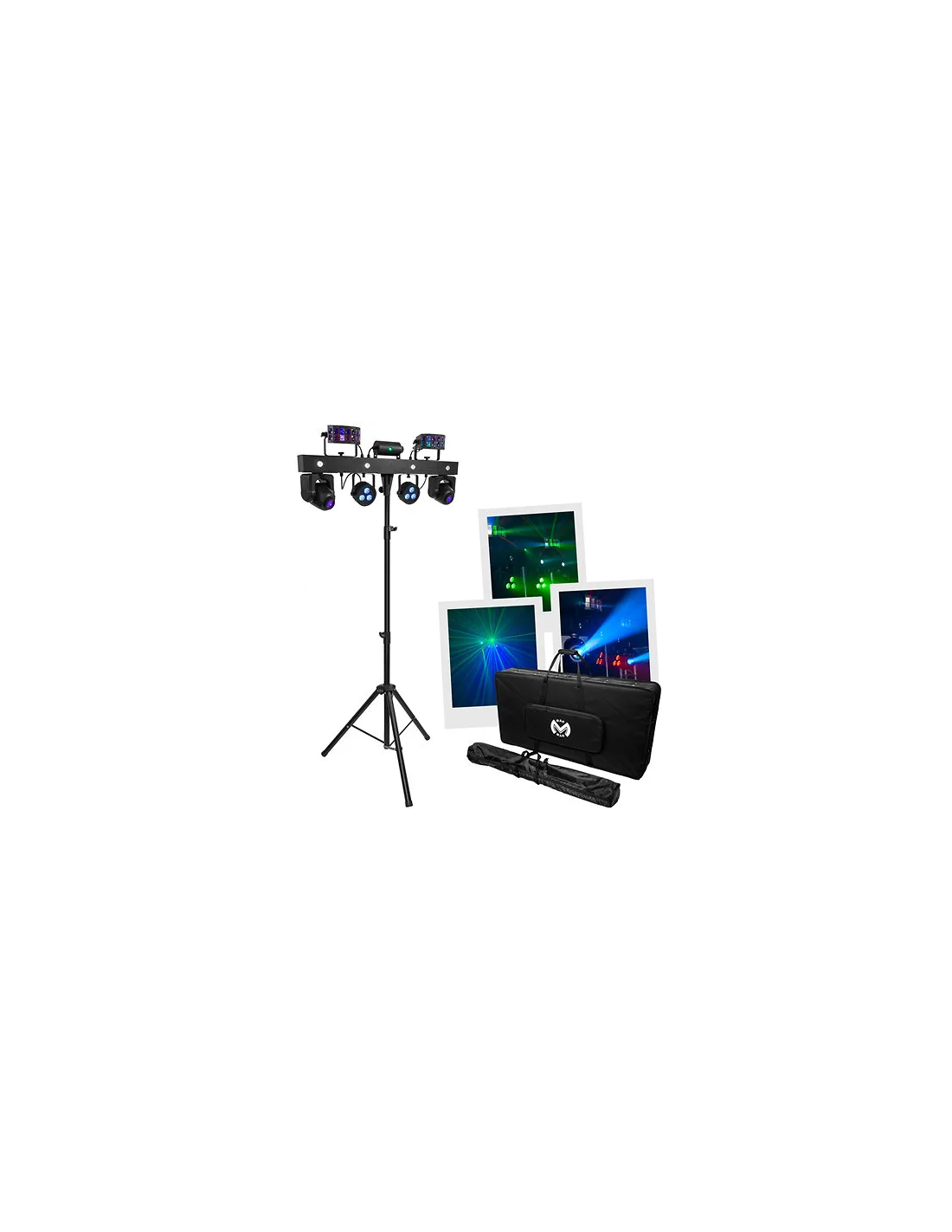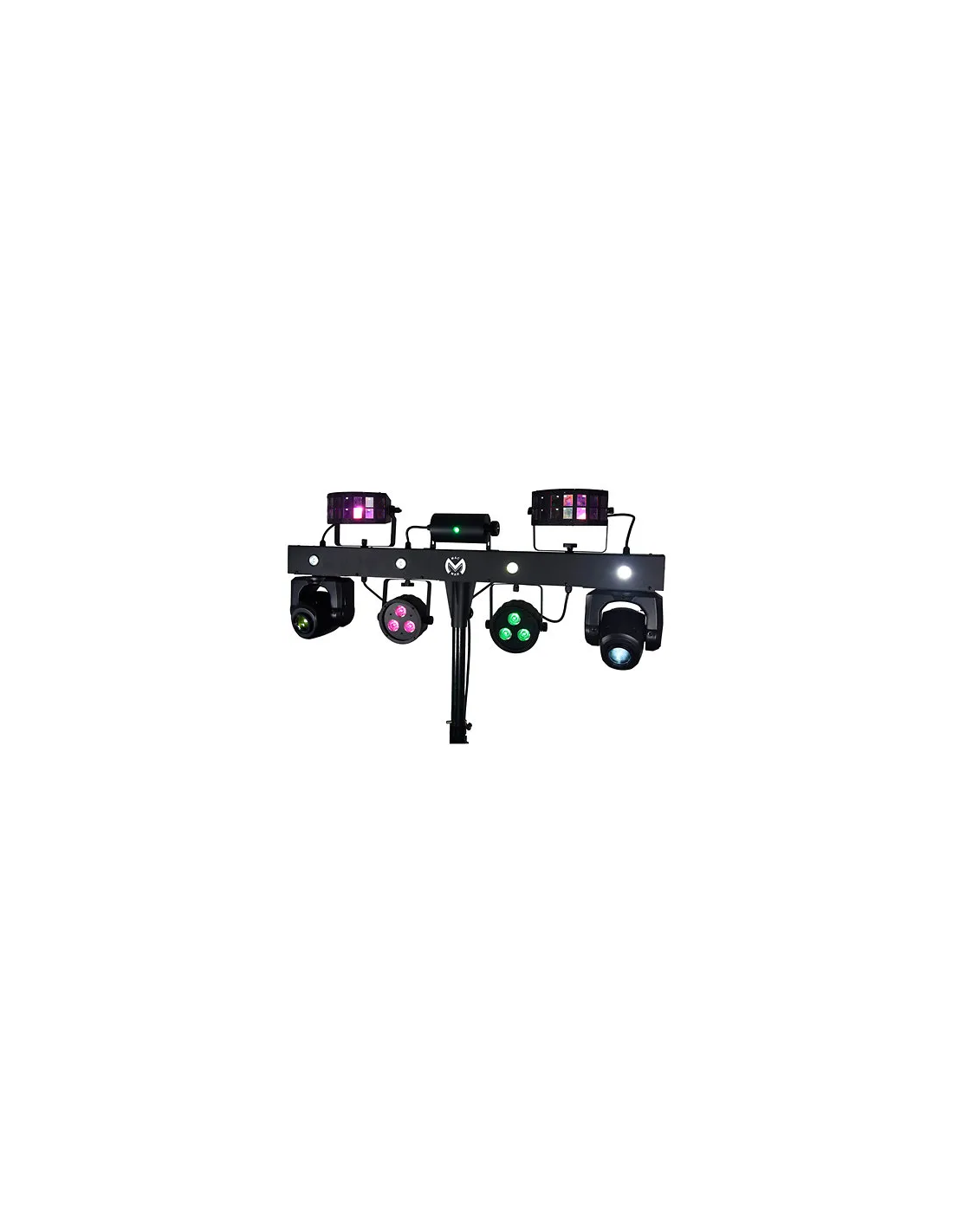 Barra Moving-FX Mac Mah con 2 faretti da 30 W, 2 effetti Derby, 2 PAR LED RGB-UV 4-in-1, un effetto Strobo con 4 LED bianchi integrati nella barra e un LASER multipoint rosso e verde. Fornito con borsa per il trasporto e telecomando wireless. È Plug & Play e sarà il partner delle vostre feste più vivaci. Ideale per i DJ mobili.