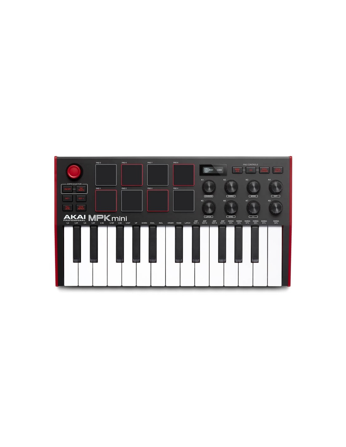 Gli appassionati del finger drumming troveranno negli 8 pad retroilluminati sensibili alla dinamica e alla pressione derivati dalla iconica serie MPC degli alleati indispensabili per le performance. I produttori musicali, i live performer, i DJ e i VJ potranno usufruire dei vari banchi sui quali si articolano gli 8 Pad, configurabili mediante la semplice pressione di un tasto nei modi Note, per trasmettere messaggi di nota MIDI, CC, per inviare messaggi di Control Change, oppure Prog Change, per i messaggi di Program Change. I messaggi generati dalla pressione sono interamente personalizzabili nel dettaglio dall'utente all'interno dell'editor software (scaricabile dal sito akaipro.com), il quale consente di inviare alla memoria interna dell'hardware ben 8 differenti configurazioni preset richiamabili all'occorrenza premendo contemporaneamente il tasto Select insieme a uno degli 8 Pad.