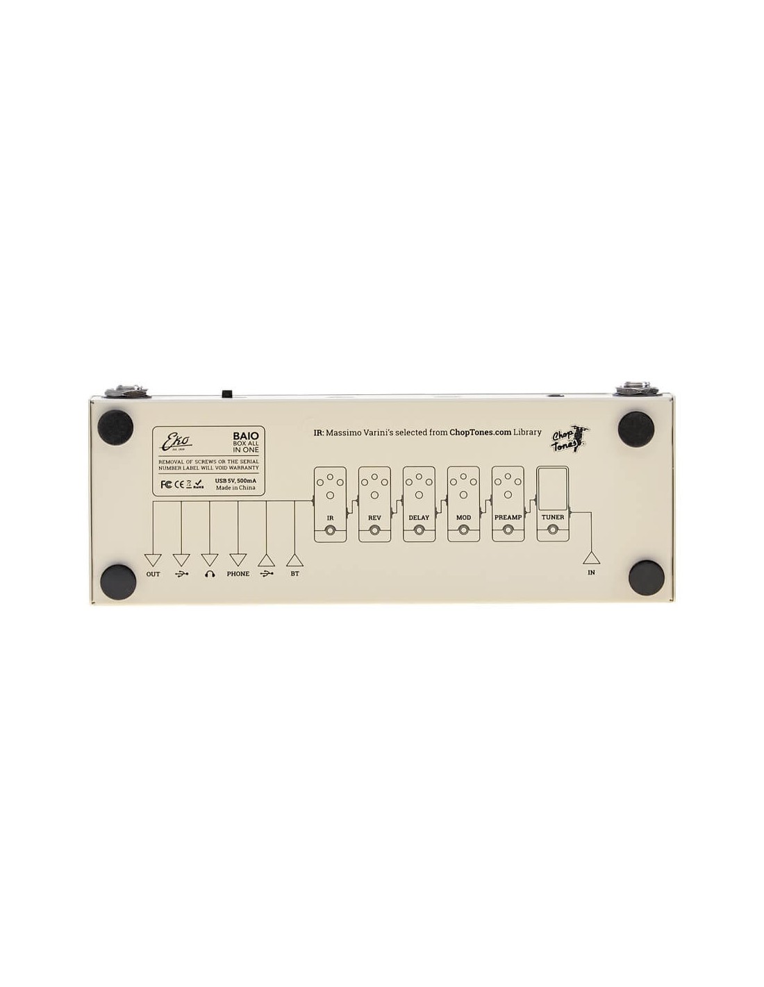 In soli 16cm di lunghezza, appena 6cm di larghezza e 260g di peso, BAIO è il sistema multieffetto all-in-one in grado di offrire tutte le caratteristiche e funzionalità indispensabili al chitarrista moderno. Facile da traportare e super resistente grazie allo chassis metallico.