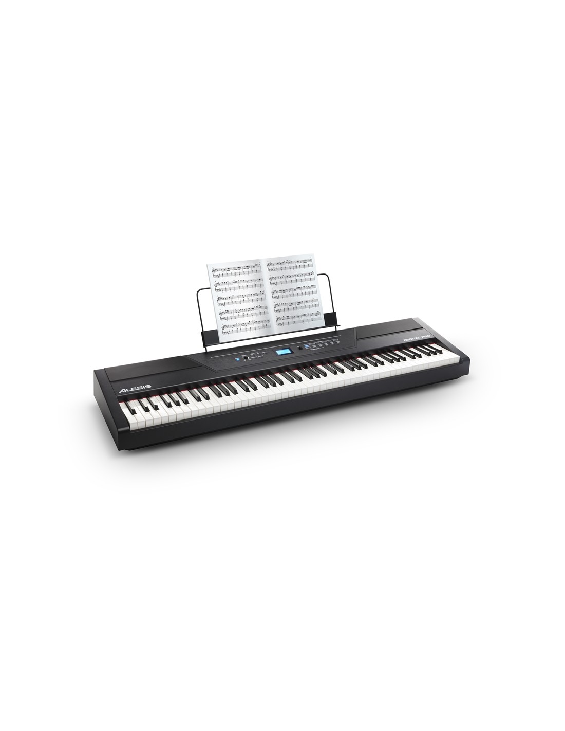 Alesis Recital Pro è un pianoforte digitale con una tastiera 88 tasti hammer-action di dimensioni standard (full-size) con risposta al tocco programmabile dall’utente e polifonia di 128 note.