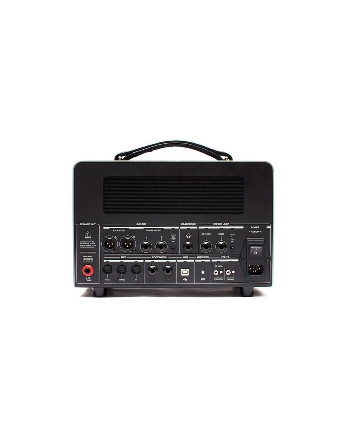 - Uscite: 1x 1/4" (speaker da 4-16 Ohm), 2x XLR (uscita bilanciata), 2x 1/4" (uscita di linea), 1x 1/4" (cuffie)