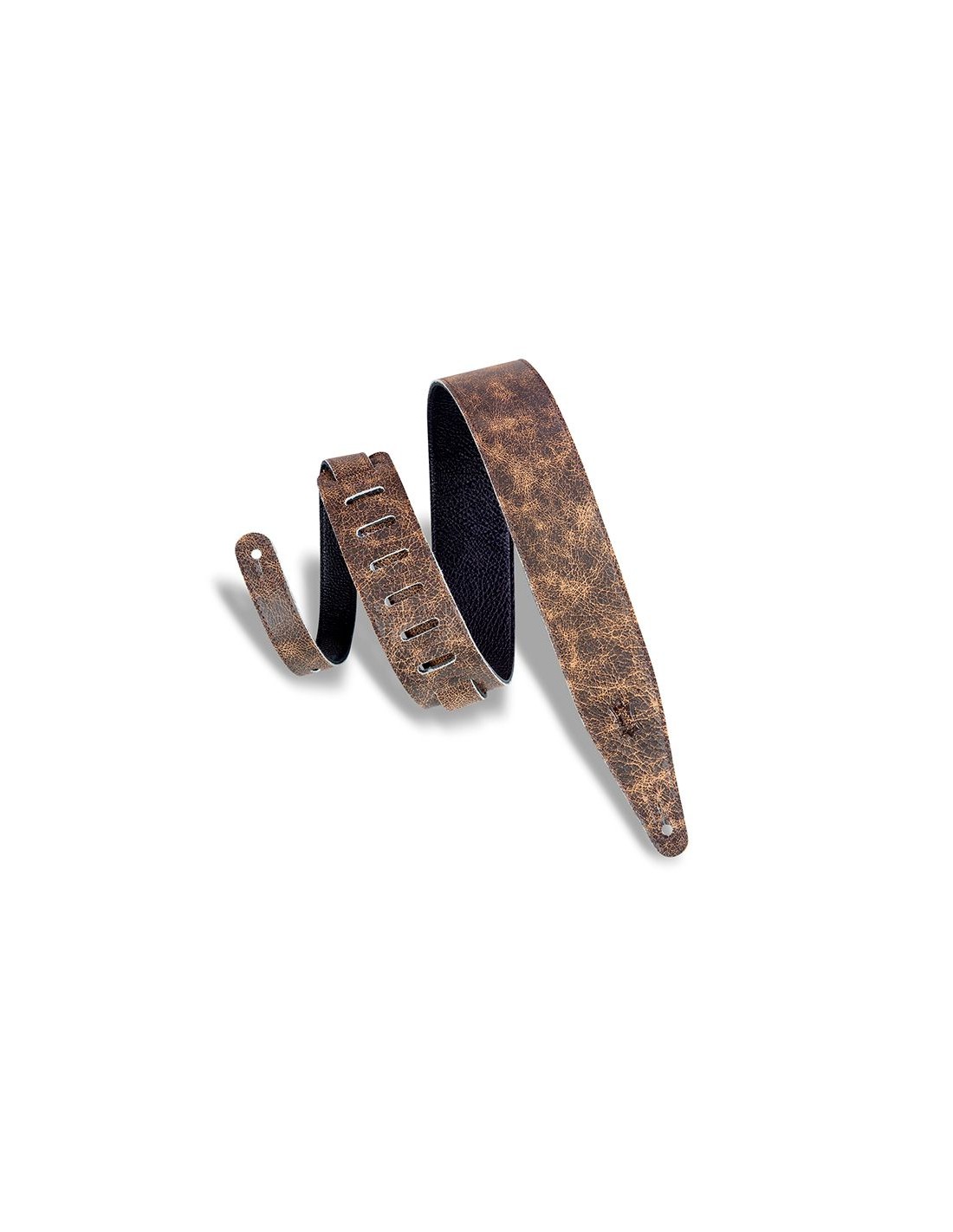 Tracolla in pelle a doppio strato con lavorazione distressed effetto rovinato, ideale per chitarra e basso